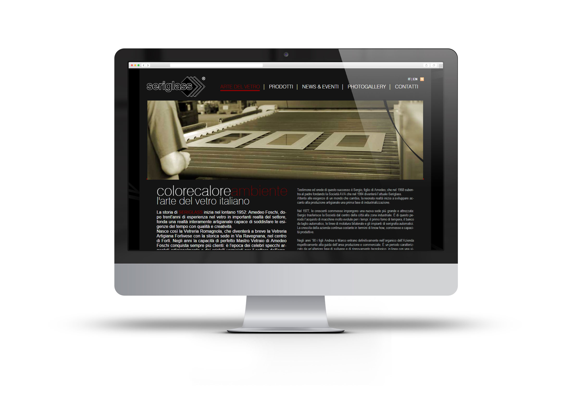 SERIGLASS è una realtà artigiana che si occupa della lavorazione del vetro. Per SERIGLASS è stato realizzato un sito web elegante ed in grado di proporre in maniera esaustiva una linea di prodotti chiamata TERMOARREDO, un elemento riscaldante in vetro, dal design unico e personalizzabile.
