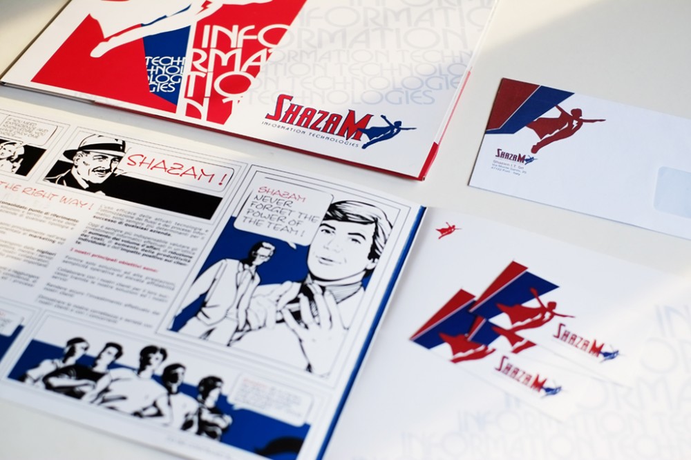 SHAZAM è un’azienda che vende e assiste svariate soluzioni software di alta qualità. Giovanni Artini, deus ex machina di questa azienda e animo curioso, ci ha commissionato la realizzazione di un logotipo molto particolare, che rievocasse la figura e le qualità di un supereroe famoso negli anni 30 in America, SHAZAM per l’appunto.